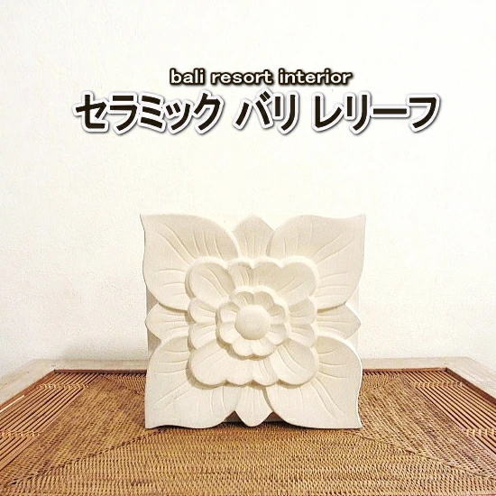 レリーフ リゾートフラワー バリストーン風 ホワイト セラミック フラワー