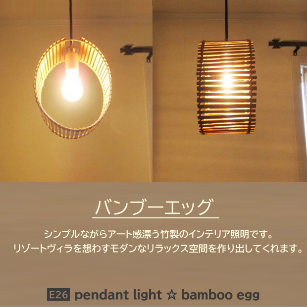 ◆リゾート風バンブーペンダントライトです。バンブーの温かみある素材感がとってもモダンでスタイルも抜群です!!また1灯タイプなので気軽に使えます!玄関やリビング(居間)、寝室などに是非どうぞ☆ |