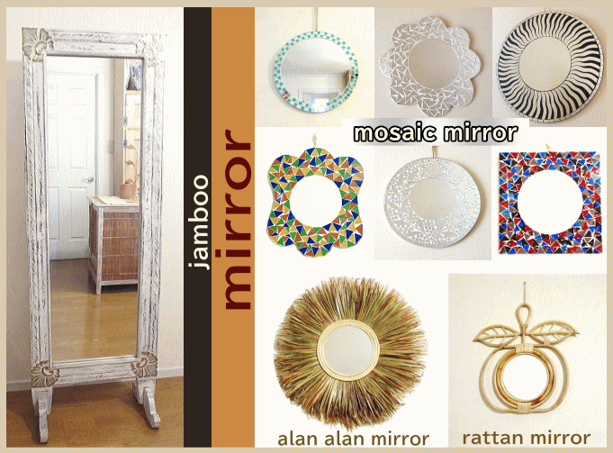 壁掛け鏡 ナチュラル モダン バリ風 リゾート ウォールミラー アランアラン 55